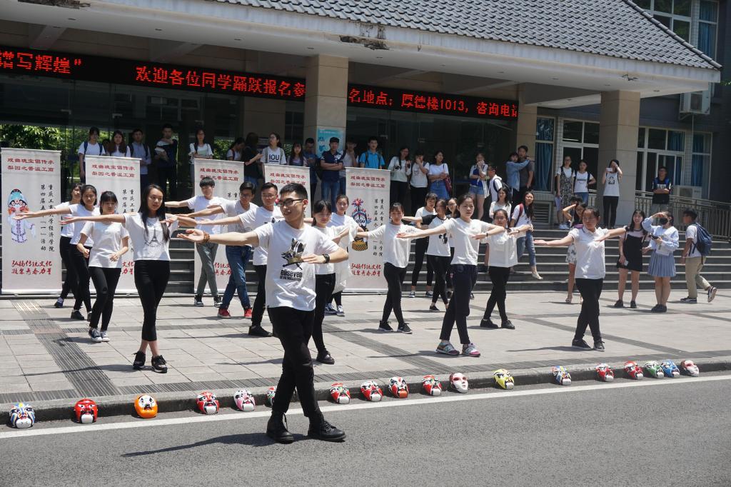 “第一套戏曲广播体操现在开始……”腕花小云手、单拉山膀、弓箭步,5月17日,万象城娱乐awc线路兰花湖片区和南岸校区,30多名活力四射的大学生整齐划一地跳起了戏曲广播操,动感的音乐配上健美、灵动的身段,引得大量过往师生驻足观看,让人眼前一亮。同学们表演的是中国有史以来第一套“戏曲广播体操”,戏曲操创新性的把戏曲程式化动作融入到大众健身理念,以流行动感的音乐配合优美的戏曲基本功动作,2017年1月一经推出便刷爆...