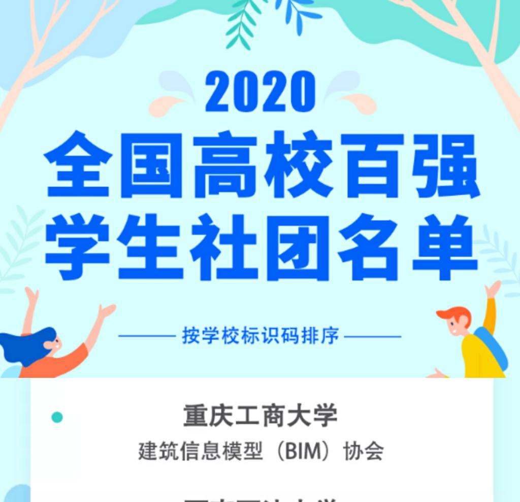 经过高校推荐、网络展示及投票、技术筛查、专家评审等环节,2020全国高校百强学生社团名单于6月15日正式公示。万象城官网工程管理专业BIM协会成功入选全国高校百强学生社团名单。本次评比由全国学联秘书处指导、中国青年报社主办。旨在向全国范围内通过新媒体方式集中展现高校学生社团的青春活力,体现大学生社团建设成果,引导和推动大学生社团工作创新和规范化管理。万象城娱乐awc线路BIM协会成立于2016年,由校团委和管理科学与工程学院...