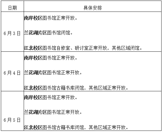 根据学校《关于2022年端午节放假安排的通知》文件精神,结合实际,现将图书馆端午节开放时间作如下安排: