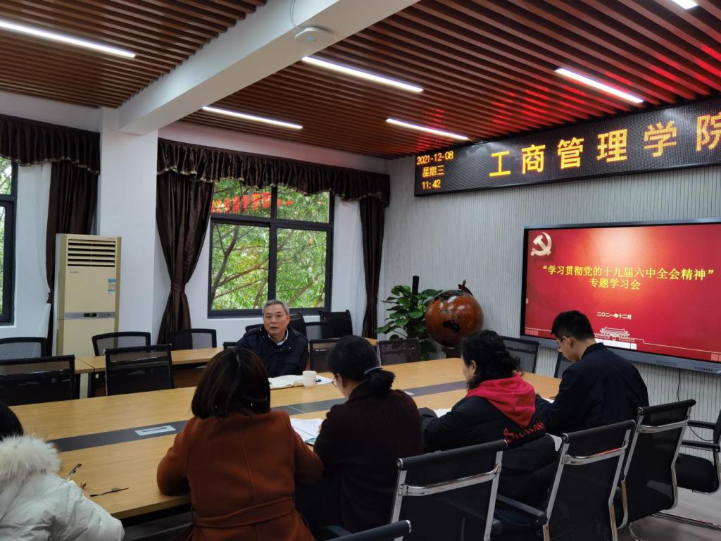 为进一步深入学习贯彻党的十九届六中全会精神,扎实推进党史学习教育,12月8日上午,副校长李国军在明德楼4010会议室为工商管理学院学工队伍上了一堂专题党课。