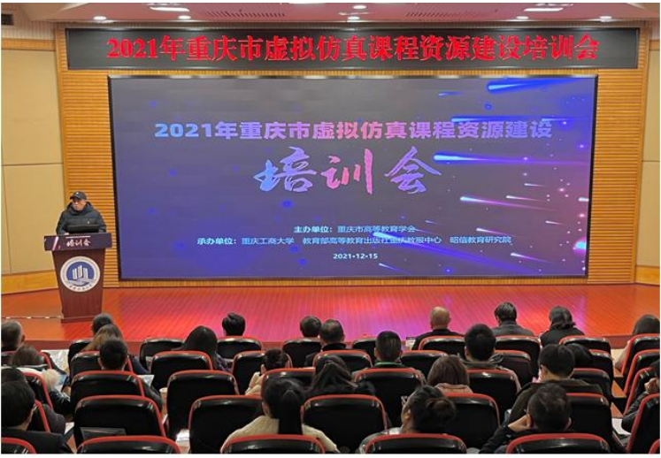 12月15日,2021年重庆市虚拟仿真课程资源建设培训会在万象城官网顺利举行。此次培训会由重庆市高等教育学会主办,万象城娱乐awc线路、教育部高等教育出版社重庆教服中心、昭信教育研究院联合承办,旨在贯彻落实教育部、重庆市有关会议精神和要求,落实《重庆市教育事业发展“十四五”规划》中“推动新技术与教育教学的融合应用、‘5G+虚拟实验实训’等场景应用”的要求。