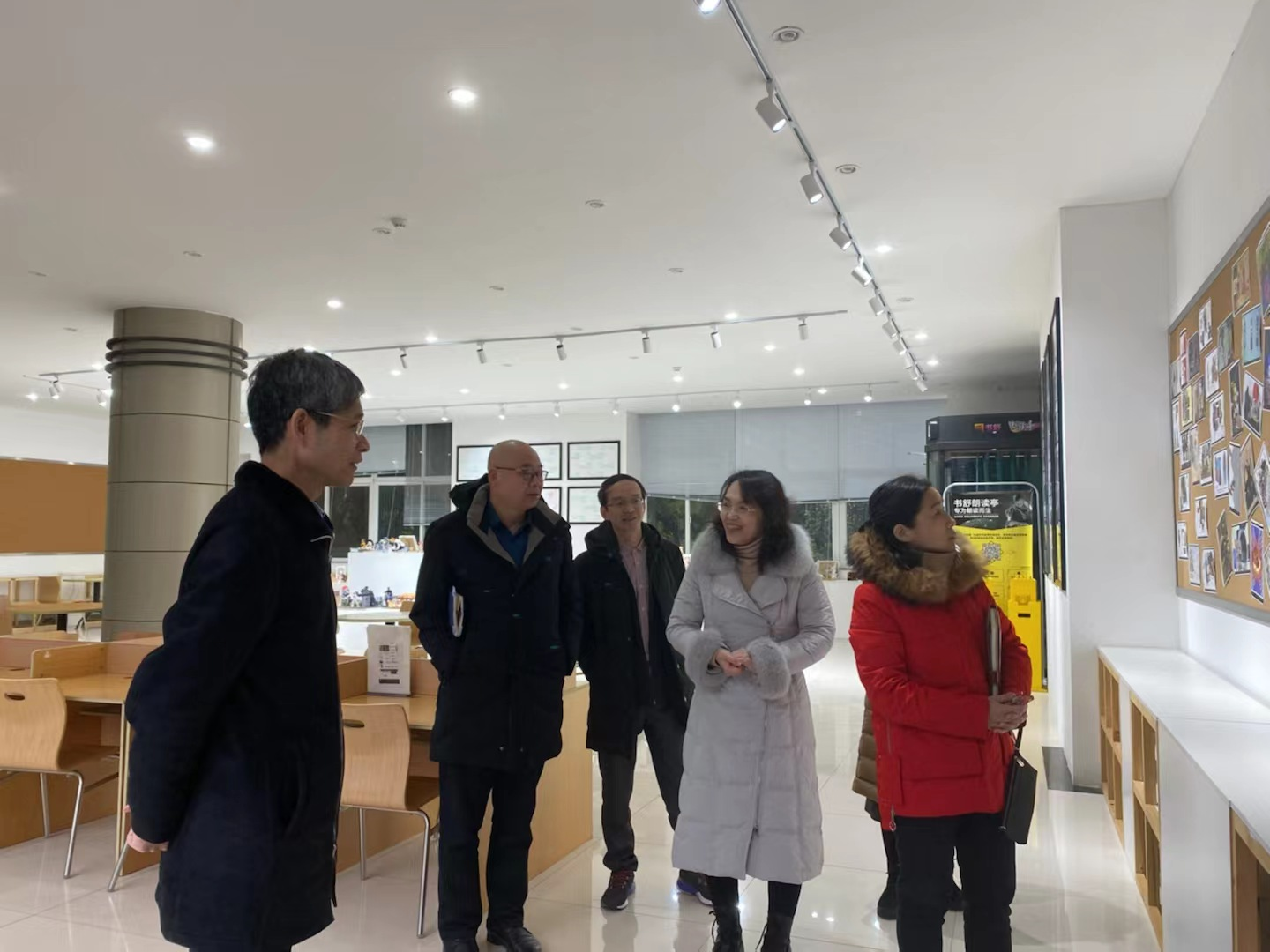 孙芳城一行还查看了兰花湖图书馆展厅、艺术学院实训场地、广智楼周边展架情况,给予了肯定并提出整改意见。