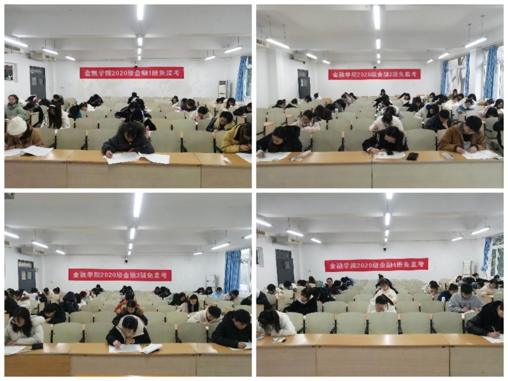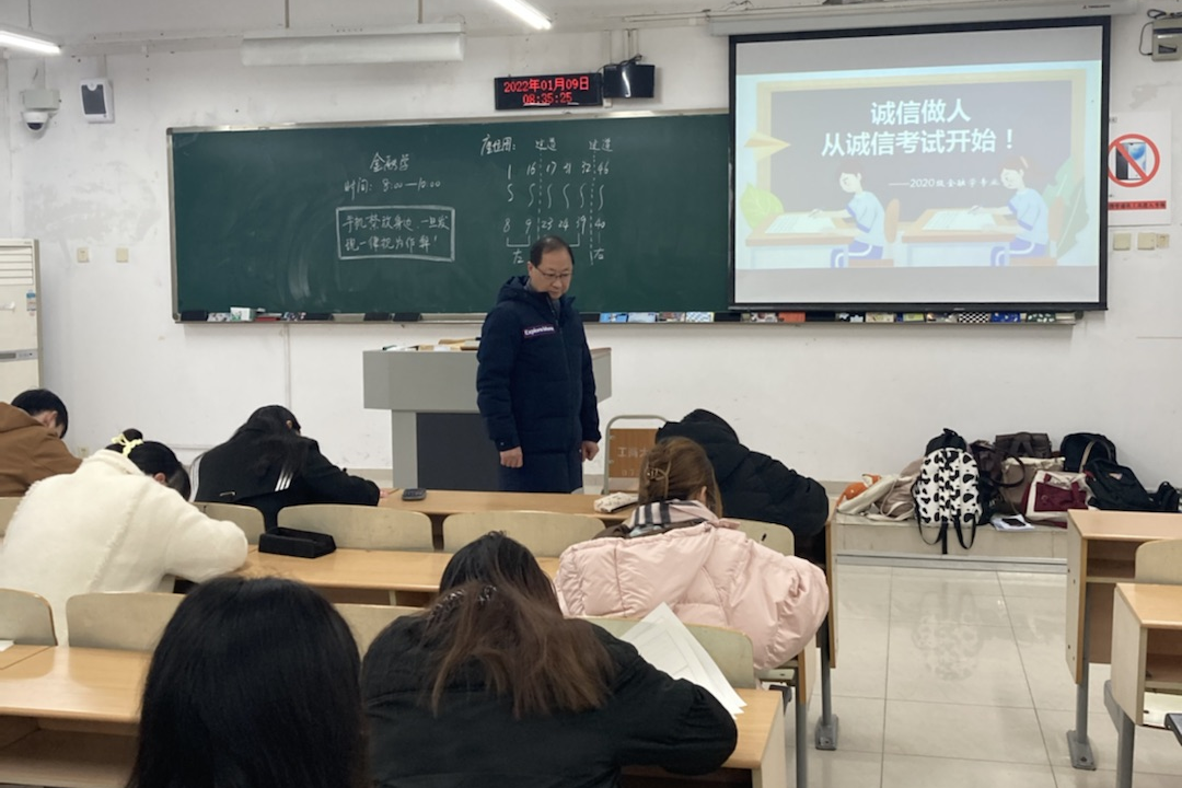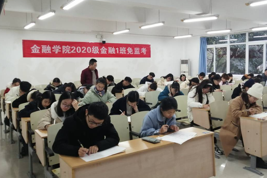 诚信做人,从诚信考试开始。1月9日上午,金融学院2020级金融学专业四个班近200名同学自愿申请在南岸校区博智楼07203、07204、07205、07210教室同时开展《金融学》课程的“免监考”诚信考试。