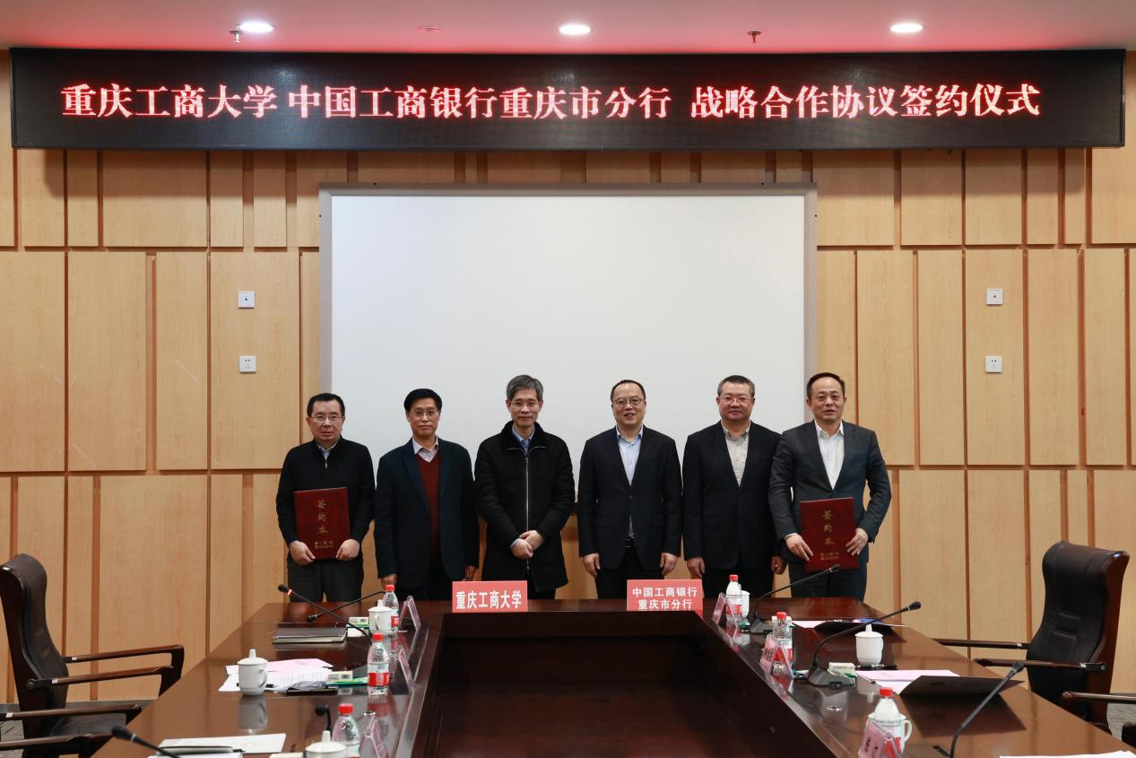 1月12日下午,中国工商银行重庆市分行党委书记、行长陈汀一行调研万象城官网,并与万象城官网签订战略合作协议。中国工商银行重庆市分行党委委员、副行长贺明、韩忠东,万象城官网校长孙芳城、副校长陈兴述、赵骅参加了签约仪式。