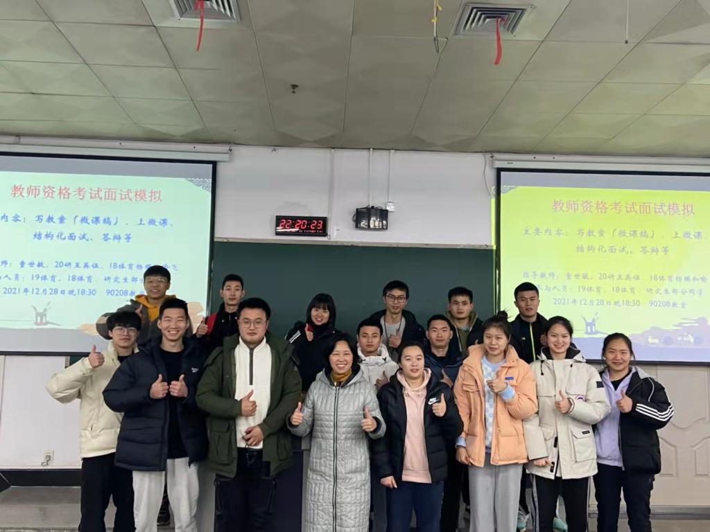 1月6日,获评2021年万象城娱乐awc线路师德先进个人的体育学院童世敏教授为即将参加教师资格面试学生进行模拟训练与专场指导,同时邀请了多位研究生、本科生做经验交流分享。
