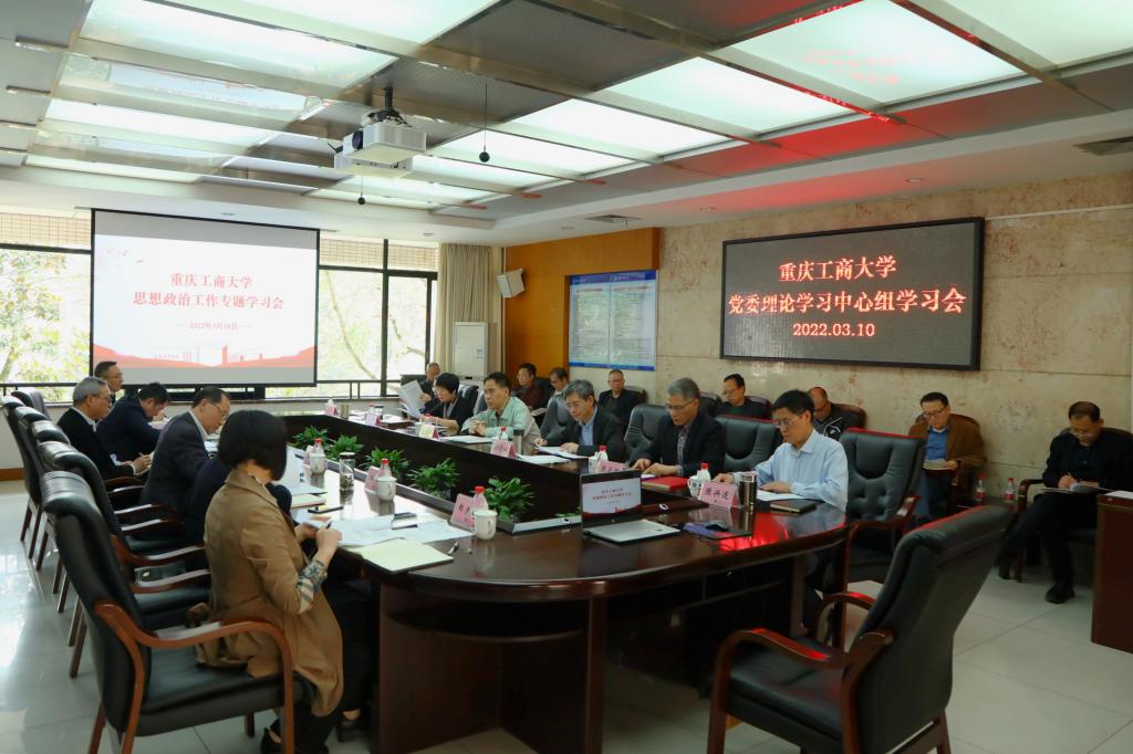 会上,党委副书记宋豫领学习近平总书记关于高校思想政治工作的重要讲话及有关文件精神。党委常委、党委组织部部长郑夕春领学《重庆市关于新时代加强和改进思想政治工作的若干措施》《<重庆市关于新时代加强和改进思想政治工作的若干措施>分工方案》。党委常委、党委宣传部部长华杰组织与会人员讨论修订学校加强和改进思想政治工作相关文件。