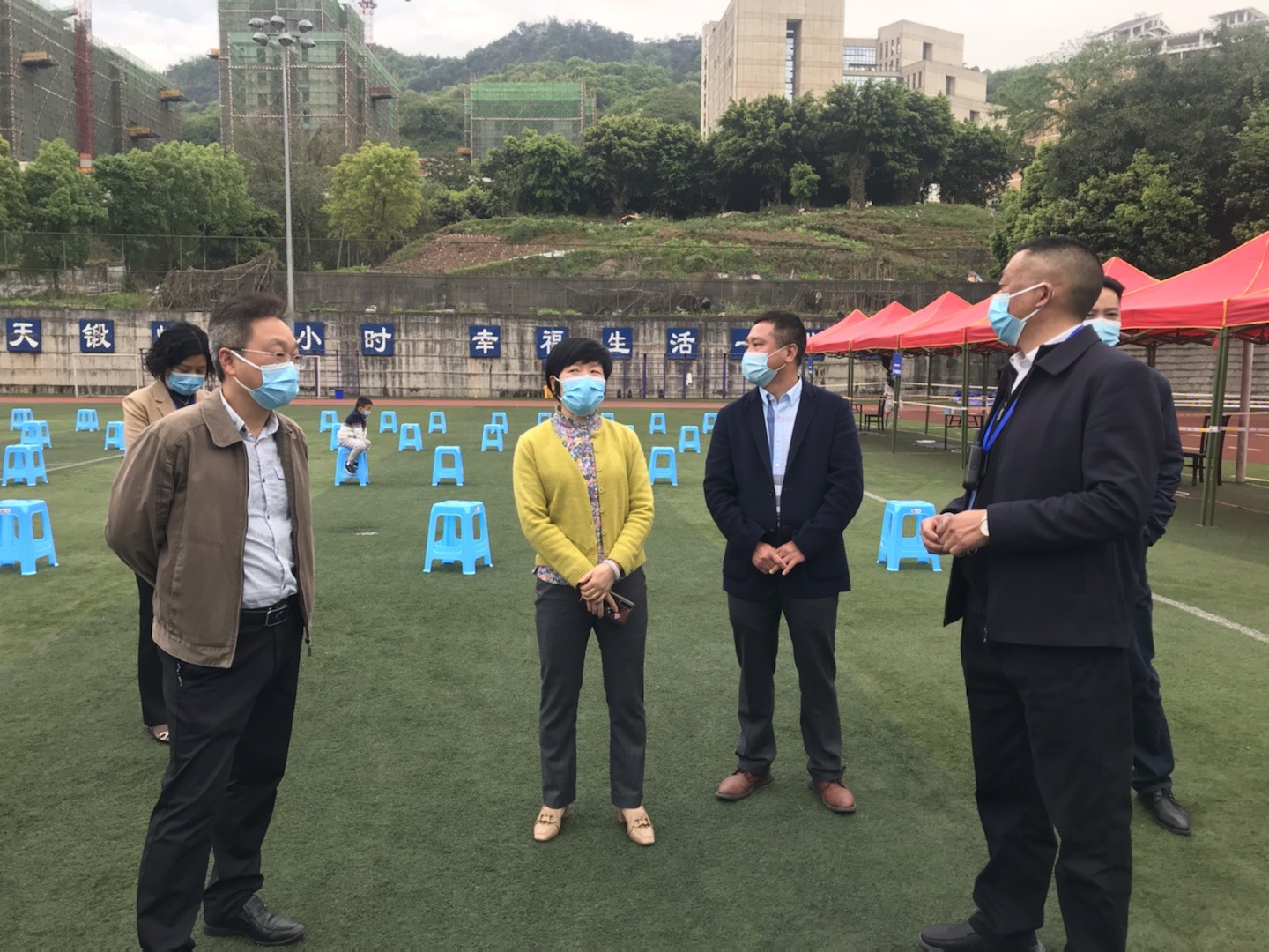 3日下午,校党委书记李志雄,党委副书记宋豫,党委常委、副校长陈兴述、李国军等分别深入南岸校区、兰花湖片区、江北校区检查指导工作,现场指挥调度,确保核酸检测顺利进行。