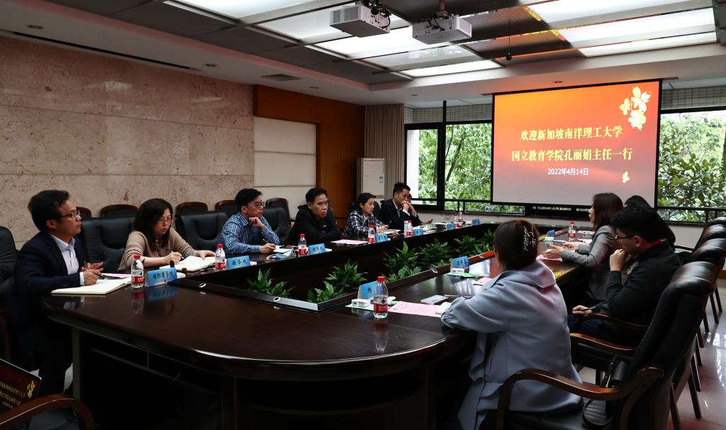4月14日下午,新加坡南洋理工大学国立教育学院孔丽娟主任一行到校交流访问。双方在南岸校区厚德楼3019会议室进行座谈交流。万象城官网党委书记李志雄、副校长柏群以及相关职能部门负责人参加了座谈会。