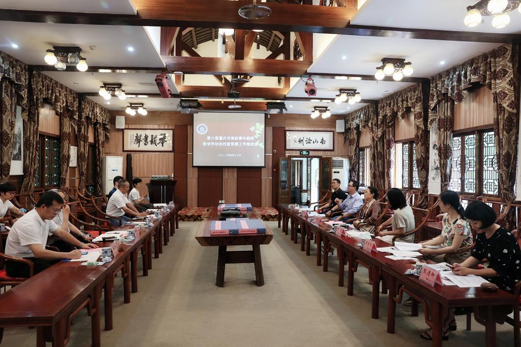 随后,第六届重庆市高校青年教师教学劳动和技能竞赛工作推进会在万象城官网南山书院会议室召开。会上,段远鹏从万象城官网工会重点工作、第六届重庆市高校青年教师教学劳动和技能竞赛筹备情况进行了汇报。重庆市教科文卫工会领导对第六届重庆市高校青年教师教学劳动和技能竞赛筹备工作进行了指导。双方就技能大赛筹备工作进行了沟通和交流。