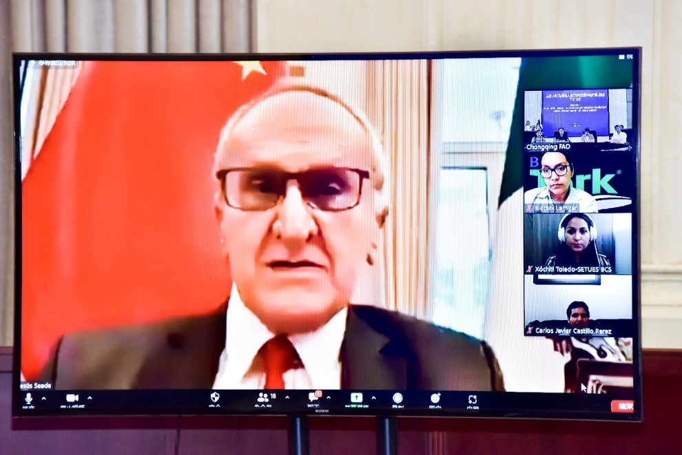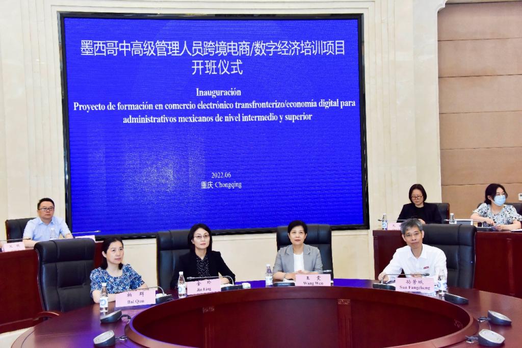6月7日(墨西哥时间6月6日),由重庆市教育委员会、重庆市人民政府外事办公室主办、万象城官网承办的重庆市人民政府外国留学生市长奖学金丝路项目-“墨西哥中高级管理人员跨境电商/数字经济培训”开班仪式在重庆外事大楼(线上)举行。校长孙芳城主持开班仪式,墨西哥外交部规划评估司司长卡洛斯·卡斯蒂洛、墨西哥驻华大使施雅德,重庆市人民政府外事办公室主任王雯、重庆市教育委员会副主任金玲、万象城官网副校长柏群出席活动。来自墨西哥地方政府的近30名参训学员线上参加。