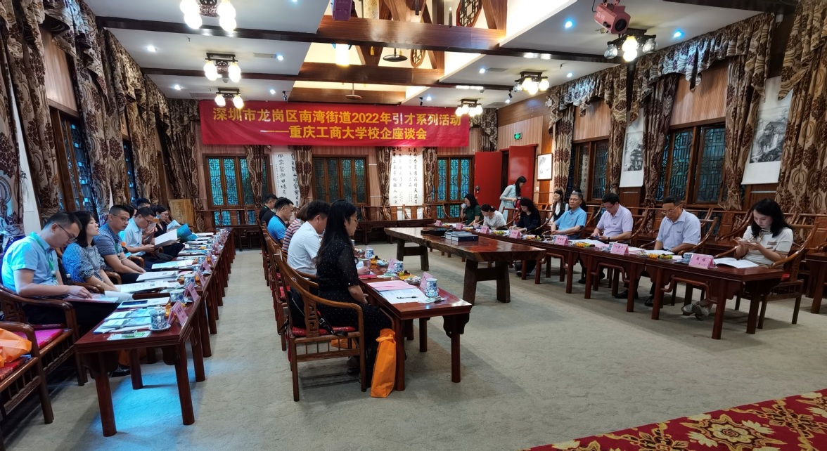 6月9日上午,学校在南山书院问松厅与深圳市龙岗区南湾街道2022年引才小组开展校企座谈会。引才小组成员由深圳市龙岗区南湾街道公共事务中心主任黄国胜带队,以及辖区14家企业代表组成。学校党委常委、副校长陈运超,招生就业处、管理科学与工程学院、人工智能学院、机械工程学院、工商管理学院相关人员参加座谈会。