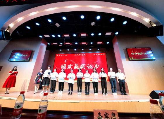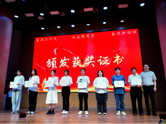 本次艺言思政红色展演共分为两个环节。在成果展示环节中,首先由艺术两院党史教育宣讲队带来了红色党史故事分享,李国军为宣讲队成员代表颁发了聘书。随后分别进行了“喜迎二十大,政治生日践初心”政治生日贺卡视频展示,“绘百年党史 忆峥嵘岁月”红色人物绘画获奖作品视频展示等活动内容,由华杰、陈龙国、胡婧婷依次为获奖同学颁发了获奖证书。在文艺演出环节中,由艺术两院师生带来的红色歌曲《错位时空》追忆了革命峥嵘岁月的历史征程;红色舞台剧《传承》演绎了老中青三代传承红色基因,赓续红色血脉的故事;集体朗诵节目《党的“二十大”之歌》歌颂了党和国家的光辉历程,站在新的历史起点上催人奋进。最后,活动在合影留念中圆满结束。