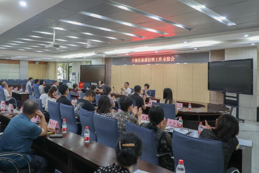 7月14日下午,学校在厚德楼2017会议室召开干部任前谈话暨工作交接会。学校党委书记李志雄,党委副书记宋豫,党委常委、党委组织部部长郑夕春,新提任干部,在原有职务上有新任职的干部,平级调整干部,本次干部调整涉及的二级班子正职干部,共计39人参加会议。会议由宋豫主持。