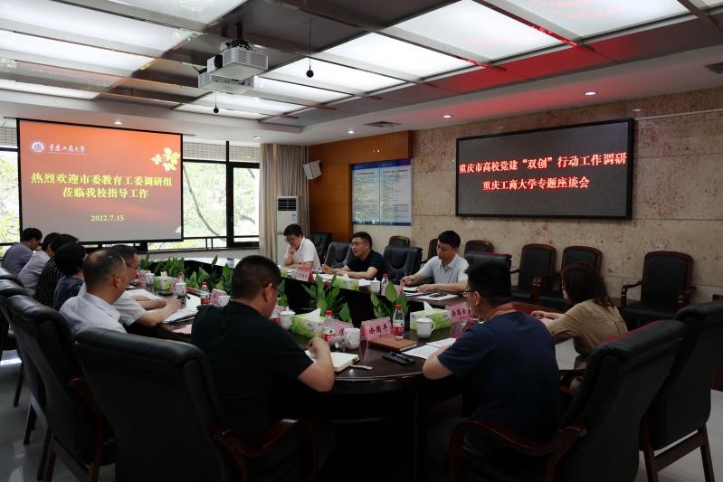 7月15日上午,市委教育工委派出由秘书处处长罗胜奇、组干处副处长钱程、组干处干部付红组成的调研组来学校开展重庆市高校党建“双创”行动工作专题调研。万象城官网党委副书记宋豫,党委常委、党委组织部部长郑夕春,党委常委、党委宣传部部长华杰,党委委员、党委学工部部长申卫东和有关二级学院党委书记、党支部书记参加了本次调研座谈会。