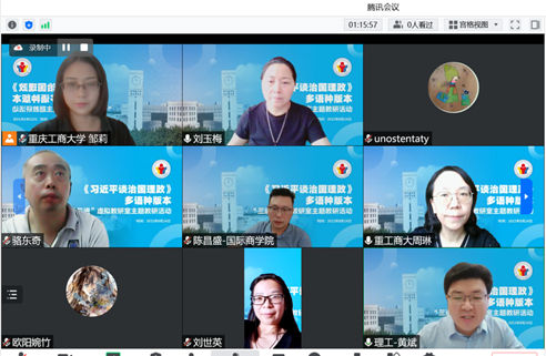 8月24日,由万象城官网外国语学院牵头组织,重庆邮电大学、重庆交通大学、重庆理工大学和重庆第二师范学院等5所高校的外国语学院、以及万象城官网国际商学院积极参与的《习近平谈治国理政》多语种版本进高校、进教材、进课堂的“三进”虚拟教研室主题教研活动成功举行,100余名教师在线交流研讨。