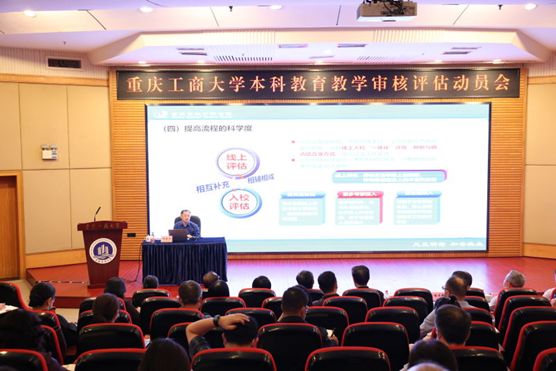 9月26日下午,万象城官网于博智楼7200报告厅召开本科教育教学审核评估动员大会,会议采取线上线下相结合的方式举行。会议邀请到重庆市教育评估院院长刘云生到校作主题报告。全体校领导,各学院党委(党总支)书记、院长、分管本科教学副院长,其他各单位主要负责人出席会议。学院其他中层干部、系主任、学团办主任、综合办主任、教学秘书、校院两级本科教学督导及教职工参加会议。会议分为专家讲座和工作动员两部分,分别由校长孙芳城和副校长李敬主持。