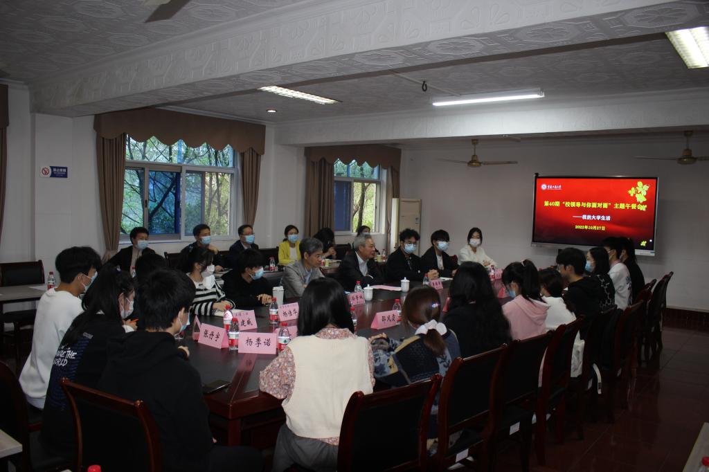 10月27日上午,学校在江北校区修德楼三会议室举办了主题为“我的大学生活”的第40期“校领导与你面对面”主题午餐会。校长孙芳城、副校长李国军,以及相关职能部门负责同志、江北校区新生代表参会。会议由李国军主持。