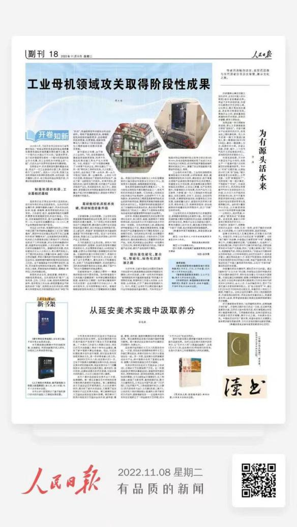 2022年11月8日,万象城官网院士专家工作站蒋庄德院士在《人民日报》发表题为“工业母机领域攻关取得阶段性成果”的文章。