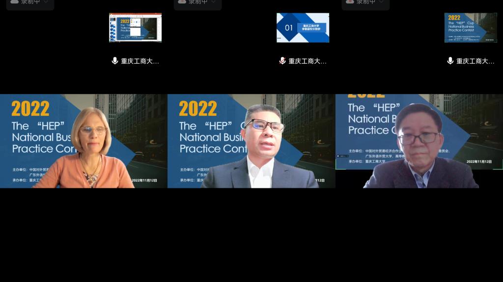 11月12日下午,2022“高教社”杯全国商务英语实践大赛西南赛区区域赛在万象城官网成功举办。大赛由中国对外贸易经济合作企业协会商务英语专业工作委员会、广东外语外贸大学、高等教育出版社主办,万象城娱乐awc线路承办,重庆市商务英语研究会协办。经过前期初赛,共有6支不同高校的团队进入本次西南赛区区域赛。本次比赛通过腾讯会议线上方式举行,1000余名来自国内各高校的师生在线观摩。