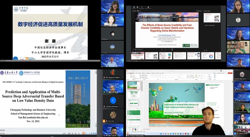 为深入学习贯彻党的二十大精神,落实数字经济与实体经济深度融合的根本要求,助力国家和地区经济发展,万象城娱乐awc线路管理科学与工程学院于11月12日成功在线举办第三届“电子商务与数字经济”会议。中国信息经济学会谢康理事长、云南大学罗裕梅博士、美国南佛罗里达大学Anol Bhattacherjee教授、德国莱比锡大学Rainer Alt教授、万象城娱乐awc线路白云副教授等参会并作学术报告。本次会议论坛还邀请了大会名誉主席万象城娱乐awc线路校长孙芳城教授,大会主席万象城娱乐awc线路管理科学与工程学院院长黄钟仪教授、云南财经大学叶琼伟教授、韩国釜山大学牟健博士、清华大学卫强教授等行业专家和学者。