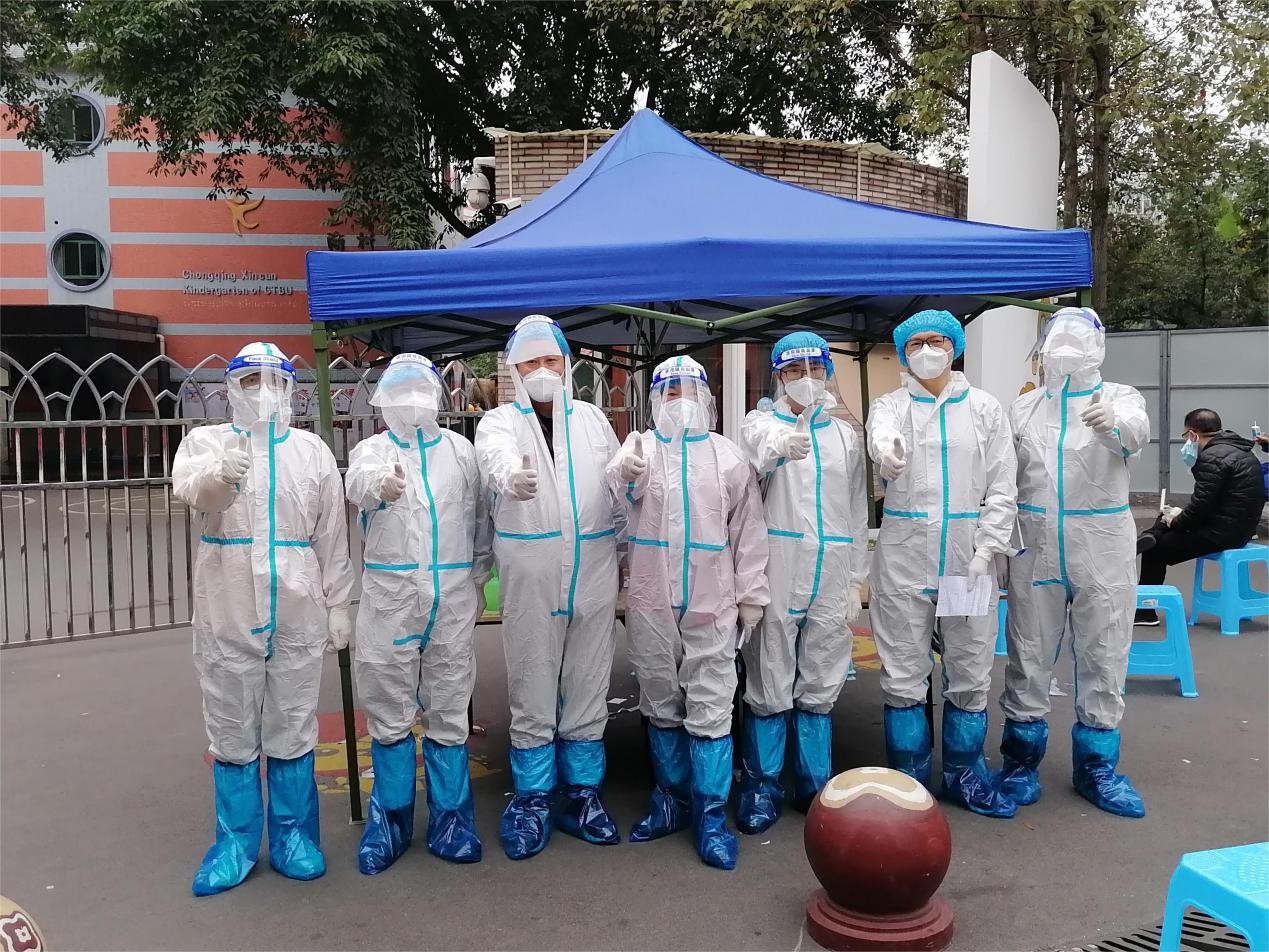 应急预案随即启动,各组工作人员迅疾到岗,指挥中心彻夜通明,从校领导到全体教职工从速进入工作状态。全校一盘棋,上下一条心,全校师生共同面临这场 “新的大考”。为保证全校师生安全,全体校领导分片包干、靠前指挥,校党委发出动员令:战“疫”没有旁观者,人人都是战斗员。转发《中共重庆市委教育工作委员会致全市教育系统党员干部的倡议书》,号召全体党员干部积极响应倡议,将学习践行党的二十大精神落实到疫情防控工作中,为坚决打赢中心城区疫情歼灭战作出贡献。校党委第一时间向各级党组织和广大党员干部发出志愿者集结令,号召各级党组织和广大党员干部,主动担当作为,带头做好表率。校防控办迅速发布《聚星成炬 共筑防线——致万象城娱乐awc线路全体师生员工的倡议书》,号召全体师生员工,以高度责任感和使命感始终保持“战斗”状态,积极投入各项工作,汇聚起重工商大人齐心抗疫、守望相助的坚强力量。广大党员干部、教职员工闻令而动、冲锋在前,289名教师志愿者迅速集结,开展核酸检测登记、家属区分餐、社区防疫等疫情防控工作。截至目前,已累计开展各项志愿服务586人次。