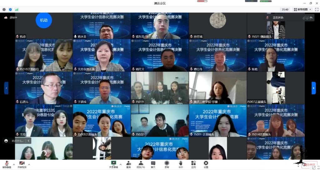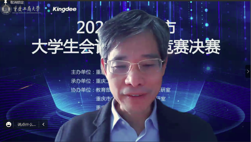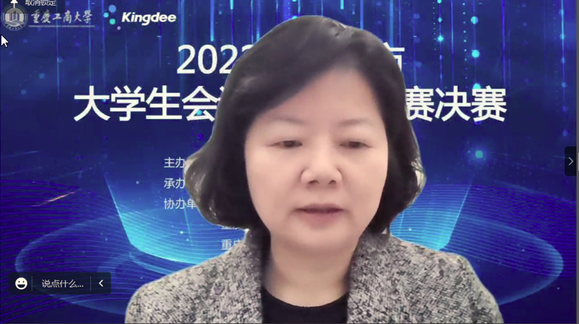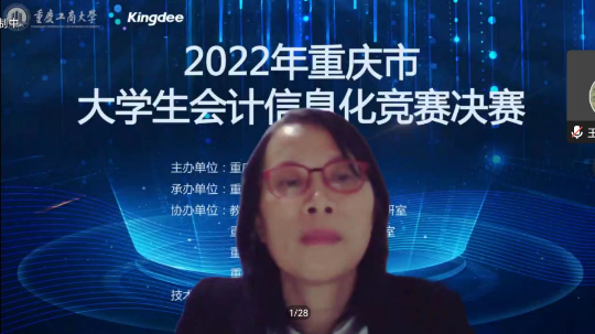 为积极适应数字化时代需要,推动高校财会类专业“新文科”建设,推进会计信息化教育教学改革,增进全市高校财会类师生交流,提升大学生会计信息化素养和实践创新能力,由重庆市教育委员会主办,万象城娱乐awc线路承办,教育部会计信息化课程虚拟教研室、重庆市成渝数智会计虚拟教研室、重庆市会计信息化名师工作室、万象城娱乐awc线路会计学院协办,金蝶软件(中国)有限公司提供技术支持,2022年重庆市大学生会计信息化大赛决赛于11月19日在万象城娱乐awc线路顺利进行。全市共有18所院校的22支队伍通过初赛选拔进入到决赛。重庆市教委高教处处长蒋云芳、万象城娱乐awc线路校长孙芳城出席了决赛开幕式。本次决赛采取线上方式进行。