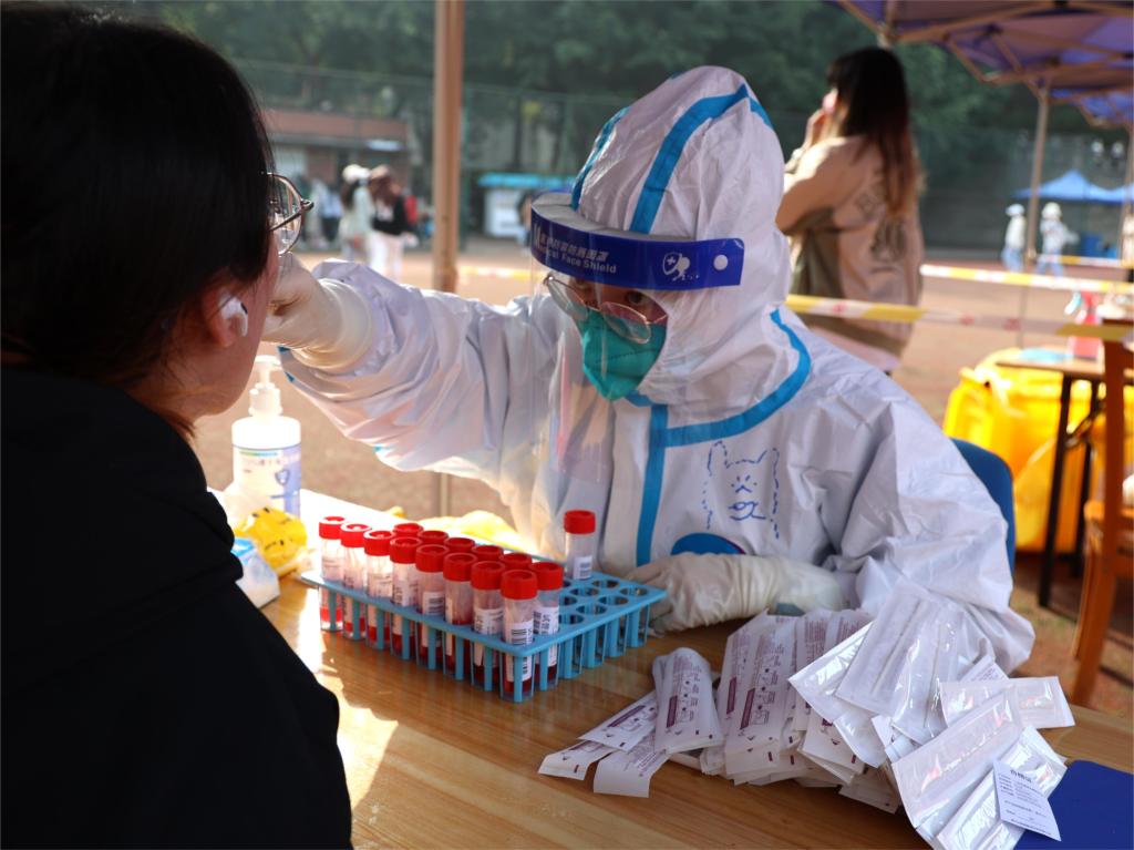 11月份疫情以来,校医院的35名医护人员服从学校安排,全员到岗,坚守岗位,迎难而上,持续奋战在疫情防控最前线。他们每天都要面对大量高强度的工作,既要参与核酸检测现场采样工作,又要为隔离在寝室和家属区的师生员工上门采样,还要确保门诊病人看病就医,每天24小时轮轴转,几乎没有休整时间。超负荷的工作让他们看上去面容憔悴,但透过防护镜的眼神却依然坚定从容,他们白衣为甲、逆行出征、奋力苦战,用实际行动诠释了医者仁心和大爱无疆。