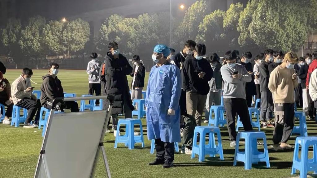白正梅正在为学生做核酸采样