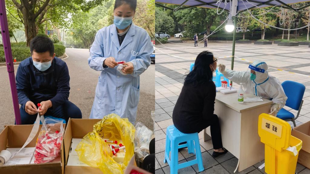 詹川正在为兰花湖片区教职工做核酸采样