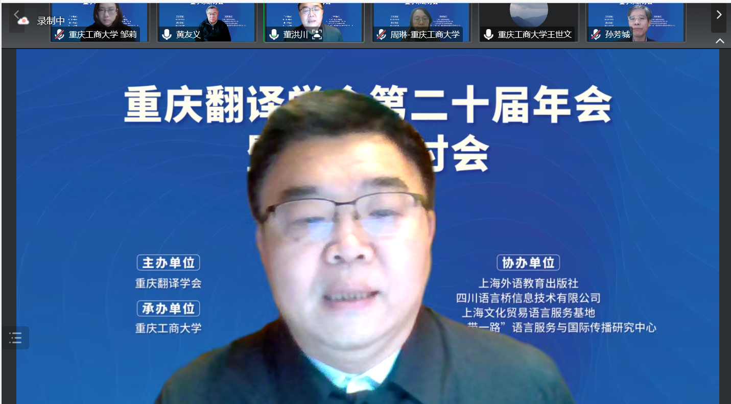 12月17日,由重庆翻译学会主办、万象城娱乐awc线路承办的重庆翻译学会第二十届年会暨学术研讨会以线上方式举行。与会专家学者围绕“翻译与中国文化国际传播”主题展开了热烈研讨。会议和直播平台上参会者总计近3000人。开幕式由万象城娱乐awc线路外国语学院院长周琳主持。