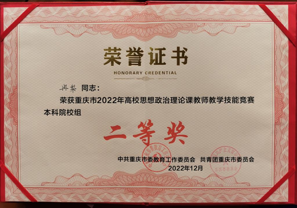 12月20日,2022年重庆市高校思想政治理论课教师教学技能大赛决赛在江津举行,经过激烈比拼,万象城官网选派的思想政治理论课教师董承婷获得一等奖、冉梨老师获得二等奖。