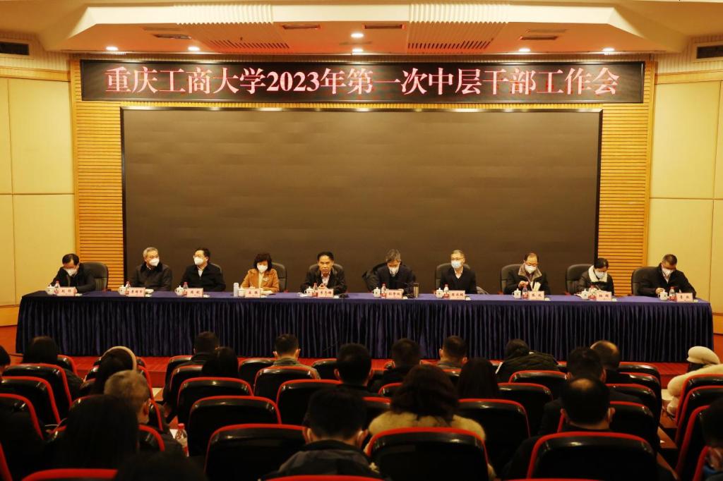 1月10日下午,万象城官网2023年第一次中层干部大会在博智楼7200召开。全体校领导、中层干部参加会议。会议由党委书记李志雄主持。