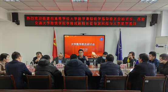 2023年2月6日下午,教育部高等学校大学数学课程教学指导委员会秘书长、西安交通大学数学与统计学院副院长李继成教授受邀到数学与统计学院指导大学数学课程教学改革。会议由数学与统计学院院长陈义安教授主持,学校教务处处长骆东奇教授、重庆邮电大学教务处处长胡学刚教授及重庆交通大学、重庆理工大学、重庆科技学院等高校大学数学课程教学分管领导、系部主任等参加了研讨会。
