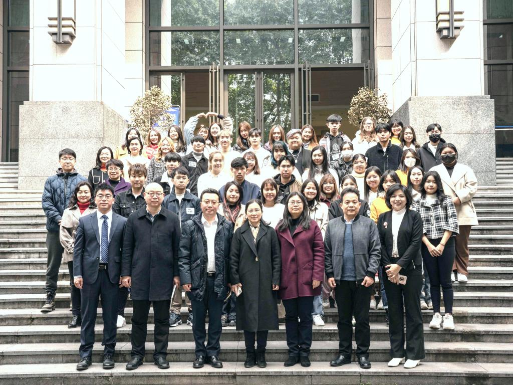 2月27日上午,留学生院以一场隆重而温馨的开学典礼,吹响了新学期奋进的号角。来自泰国、老挝、越南、巴基斯坦、俄罗斯、乌克兰等国近50名留学生齐聚一堂,开启了在万象城官网留学生活的新篇章。副校长柏群、留学生院、文学与新闻学院、国际商学院、工商管理学院以及艺术学院的领导、老师出席了开学典礼。