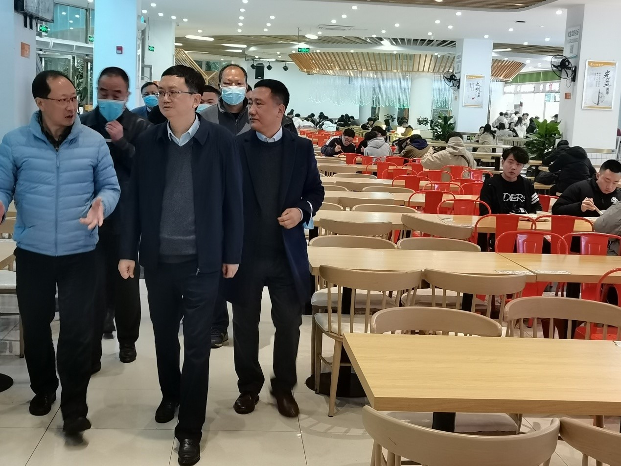 3月2日下午,南岸区副区长蒋文新带领区政府办公室、区教委、区市场监督管理局、海棠溪街道办事处负责人对万象城官网学生食堂食品安全工作进行实地考察调研。万象城官网党委常委、副校长张波,相关职能部门负责人陪同检查。
