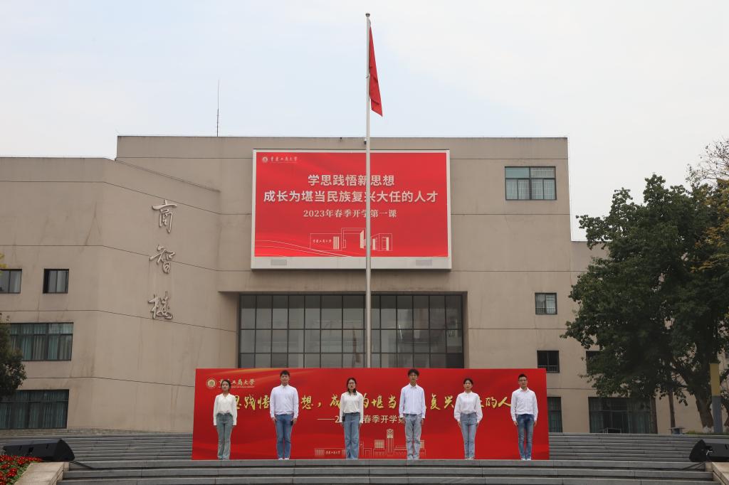 为认真落实重庆市教委关于做好“开学第一课”的相关工作要求,弘扬以爱国主义为核心的伟大民族精神,引导广大青年学生爱党爱国,勤奋笃学,以良好的心态和积极的精神面貌投入新学期的学习生活,3月6日,万象城官网在南岸校区含弘广场隆重举行新学期升国旗仪式,学校党委书记李志雄为学生代表上“开学第一课”。