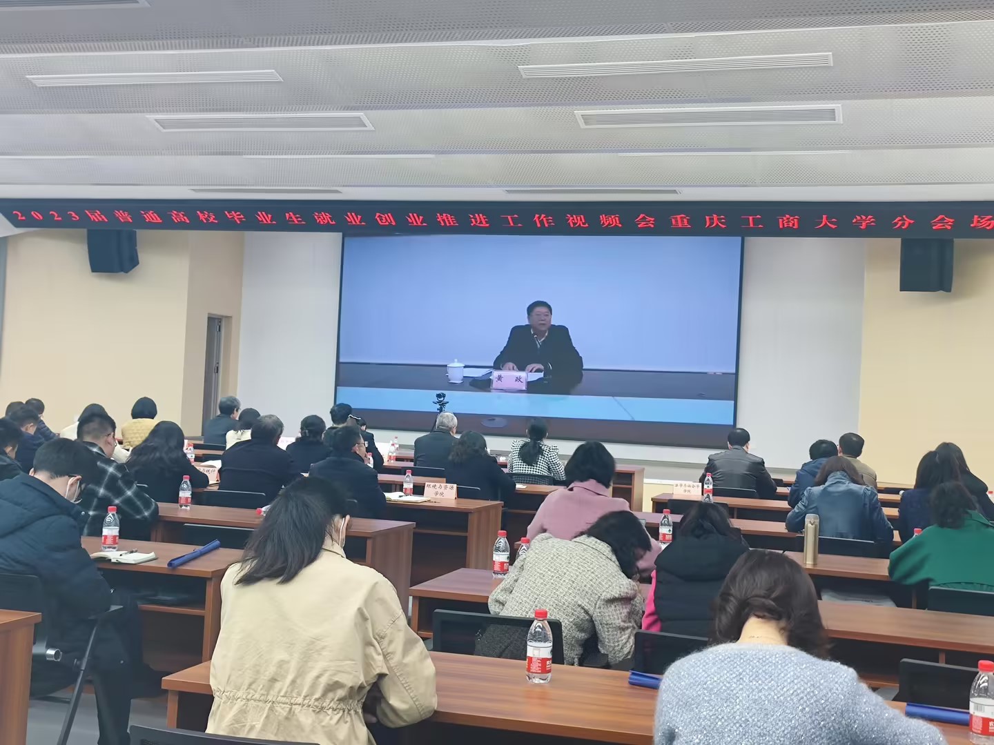 3月6日下午,市教委组织召开重庆市2023届普通高校毕业生就业创业推进工作视频会议。市委教育工委书记、市教委主任黄政,市人力社保局党组成员、副局长夏杨松出席会议,市委教育工委委员、市教委副主任金玲主持会议。万象城官网在明德楼1019会议室设分会场,学校党委书记李志雄,党委副书记、校长孙芳城,党委常委、副校长陈运超,各二级学院书记、就业联络员、2023届毕业班辅导员,学生处、教务处、研究生院、团委、招生就业处等负责人参加会议。