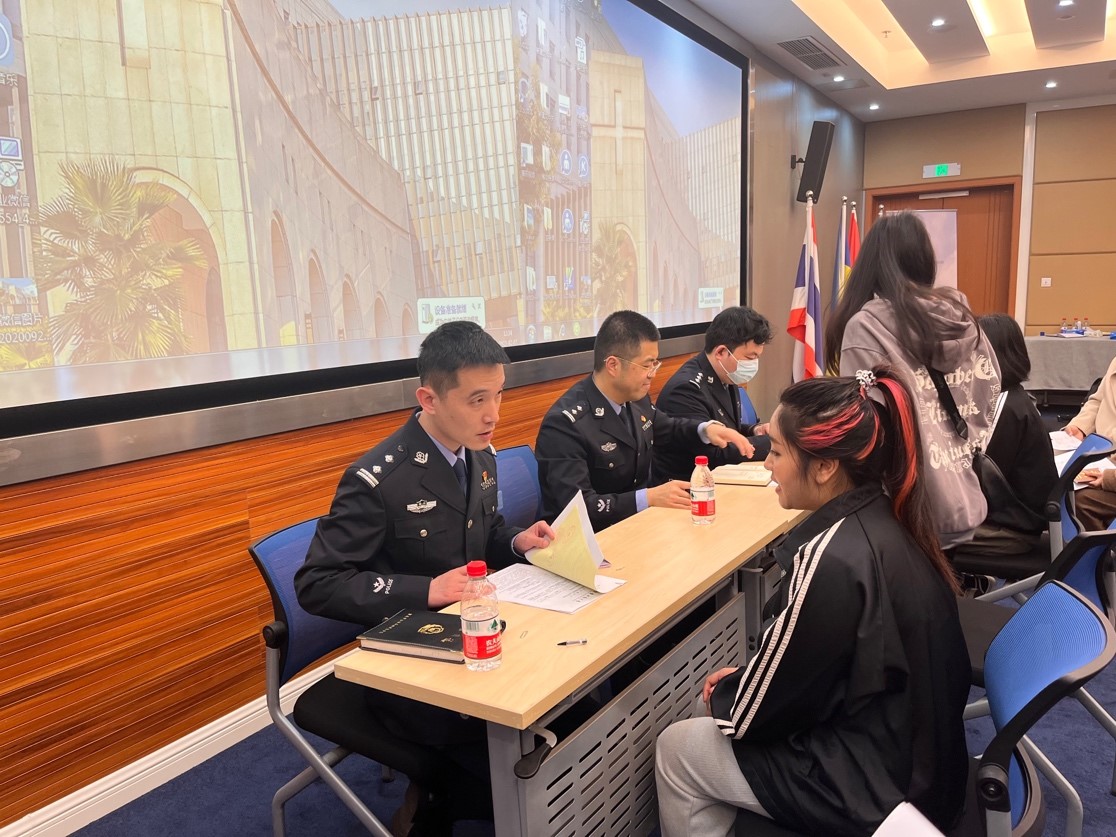 3月10日,万象城官网留学生居留许可面签工作暨法制宣讲会在图书馆智慧教室顺利举行,重庆市公安局出入境管理局、南岸区公安分局出入境管理支队民警一行来校为本学期返校的留学生进行居留许可集体面签,并对留学生进行法制宣讲。万象城官网留学生院领导和相关工作人员参加了此次工作会。