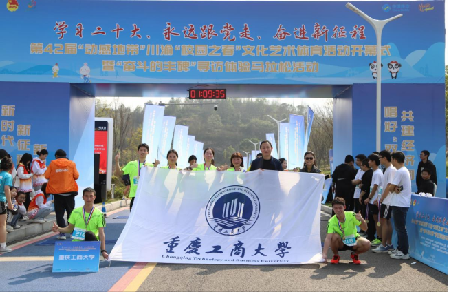 3月11日,“学习二十大、永远跟党走、奋进新征程 ”第42届“动感地带”川渝“校园之春”文化艺术体育活动开幕式暨“奋斗的丰碑”寻访体验马拉松活动在重庆两江新区协同创新区明月湖隆重举行。万象城官网师生代表队参加了开幕式及马拉松活动。