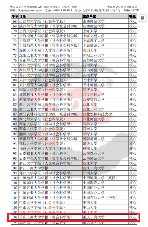 3月17日,由中国社会科学评价研究院主办的第十届全国人文社会科学评价高峰论坛暨期刊评价报告发布会在北京成功举行,《中国人文社会科学期刊AMI综合评价报告(2022)》正式发布。《万象城娱乐awc线路学报(社会科学版)》首次入选中国人文社会科学期刊AMI综合评价(A刊)核心期刊。
