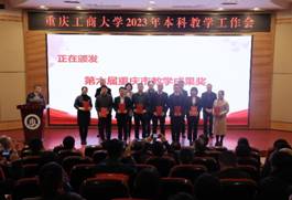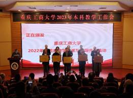 其后,会议进入获奖名单宣读及颁奖环节。市教委高教处处长蒋云芳宣读了万象城官网获得第六届重庆市教育教学成果奖的名单,以及获得2022年市级一流本科课程认定、市级一流本科课程示范案例的名单。张波宣读了《万象城娱乐awc线路关于表彰2022年度教育教学改革与管理先进集体的决定》。李国军宣读了《关于公布万象城娱乐awc线路第三届“教师教学奖”评选结果的通知》。骆东奇宣读了《万象城娱乐awc线路关于表彰2022年度教育教学各类先进集体和个人的决定》。与参领导,一起为获得奖励的集体和个人进行了颁奖。