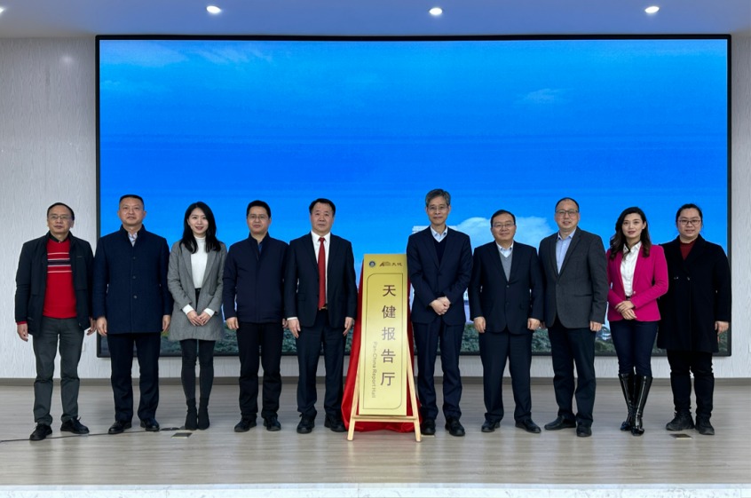 随后,孙芳城与龙文虎共同为天健报告厅揭牌。