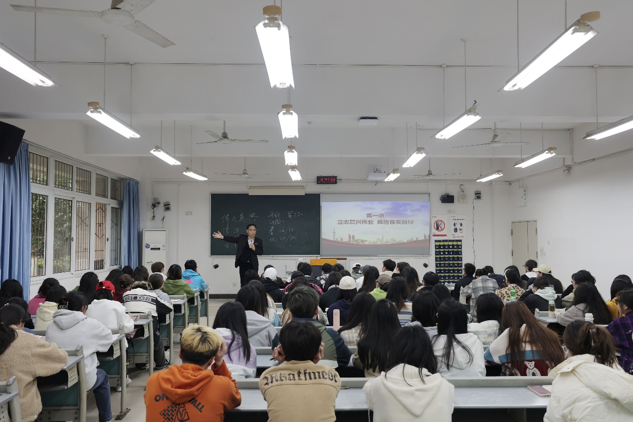 3月30日和31日上午,学校党委书记李志雄在7210和90224教室,以“立志复兴伟业、踔厉奋发前行”为主题,为2021级机械电子工程一、二班学生和2020级广告学一、二班的同学们,讲授了一堂生动的形势与政策课。