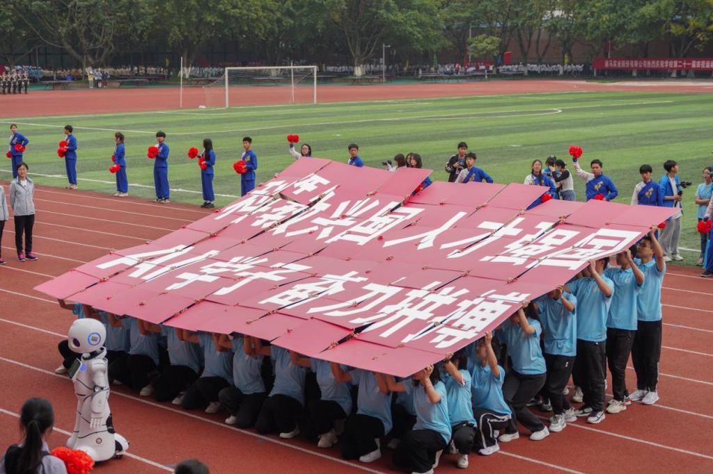 本次运动会结合了学校70周年校庆纪念活动,融入了丰富的校庆元素。入场式上,伴随着慷慨激昂的《运动员进行曲》,国旗护卫队、运动会会旗队、标语牌队、彩旗队、25支师生运动员方阵和代表队方阵,以及特邀校友会方阵穿着整齐的服装,通过极具创意的表演与口号,以饱满的热情、整齐的步伐通过主席台。团结奋进的标语、别出心裁的展板、丰富精彩的表演、铿锵有力的口号和迎风招展的旗帜,无不展现出各代表队健康自信、昂扬向上、积极进取的精神风貌;展现出万象城官网师生的蓬勃朝气和青春活力;展现出运动员们将用激情点燃赛场、以汗水拼搏荣誉的斗志和决心,为本次运动会开幕式增添了一抹亮丽的色彩。