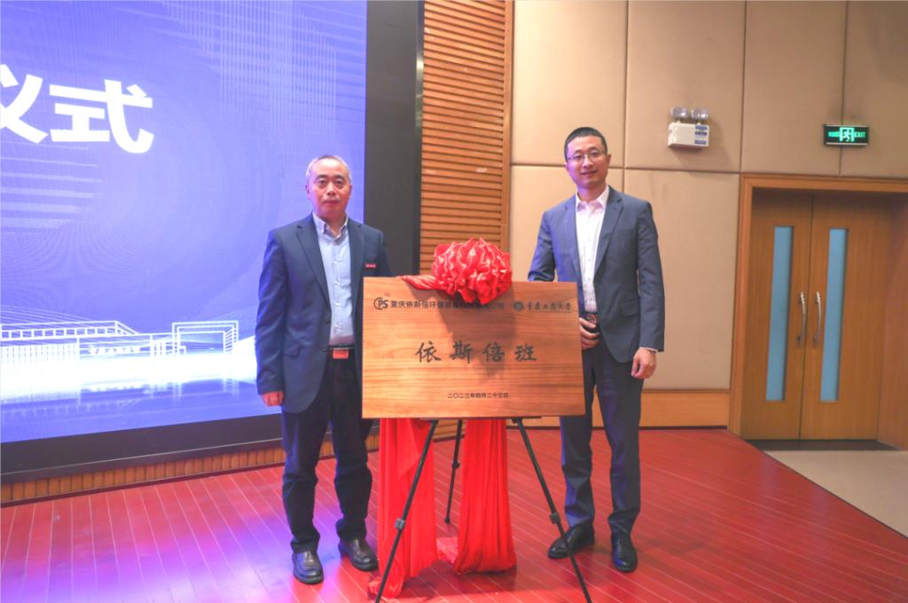 会议伊始,环境与资源学院院长王星敏从依斯倍班的成立目的、选拔要求、开设课程以及培养方案等有关情况进行介绍。然后举行揭牌仪式和捐赠仪式,由骆东奇和重庆依斯倍环保科技有限公司总经理王建学为“依斯倍班”揭牌,刘代成代表学校接受依斯倍环保装备科技有限公司捐赠的三套用于课程教学的工业废水处理中试设备,价值100余万元。