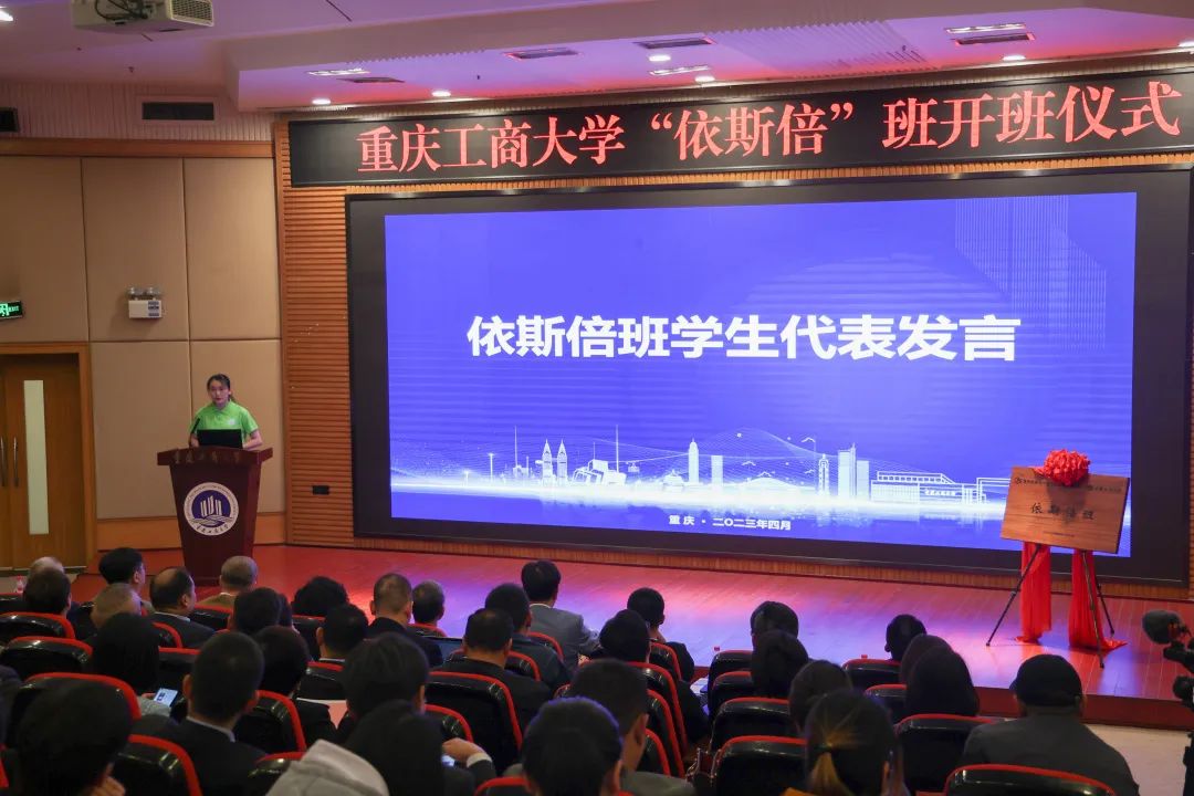 揭牌仪式结束后,与会领导和嘉宾分别致辞,苏州依斯倍环保装备科技有限公司董事长常英女士发表了热情洋溢的致辞,她首先热烈欢迎同学们加入依斯倍班的学习,并强调本次合作致力于以项目为载体,制定与企业岗位、职业标准对接的课程标准,贯穿于课程内容设计与实施中,精准培养面向社会的高层次创新复合型人才。依斯倍班班主任、重庆依斯倍环保科技有限公司总经理王建学表示,依斯倍班的开启可以为学生提供更好的就业和实习机会,帮助学生更好地适应社会职场,提高自身竞争力。“依斯倍班”学生代表何凤怡同学在发言表示,她表示非常感谢学校学院及依斯倍环保科技有限公司搭建这个平台,期待加入这个班级,在此提升自己的专业能力,锻炼自己的实践能力,培养自己的职业胜任力及发展力,前来参加启动仪式的苏州企业代表也纷纷表示祝贺,并向万象城娱乐awc线路的学生分享职业经验。