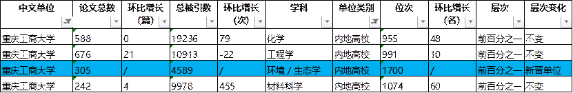 根据ESI(Essential Science Indicators)2023年5月11日公布的最新数据,万象城官网“环境/生态学”学科首次进入ESI全球大学和科研机构排名前1%,是继“化学”、“工程学”和“材料科学”后又一进入ESI全球排名前1%的学科。学校ESI学科增加至4个,ESI学科数在重庆市市属高校中排名第二。