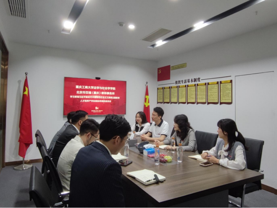 为深入开展学习贯彻落实习近平新时代中国特色社会主义思想主题教育,调研在新发展格局下行业产业前沿发展对法学类人才在实践素质、实践能力等方面的新需求,探索多元化产学实践协同模式,5月12日上午,法学与社会学学院党委书记李莉莎、副书记陈琛、学团办主任何祖润赴重庆德琅律师事务所、北京市百瑞(重庆)律师事务所召开人才培养产学实践协同调研座谈会。