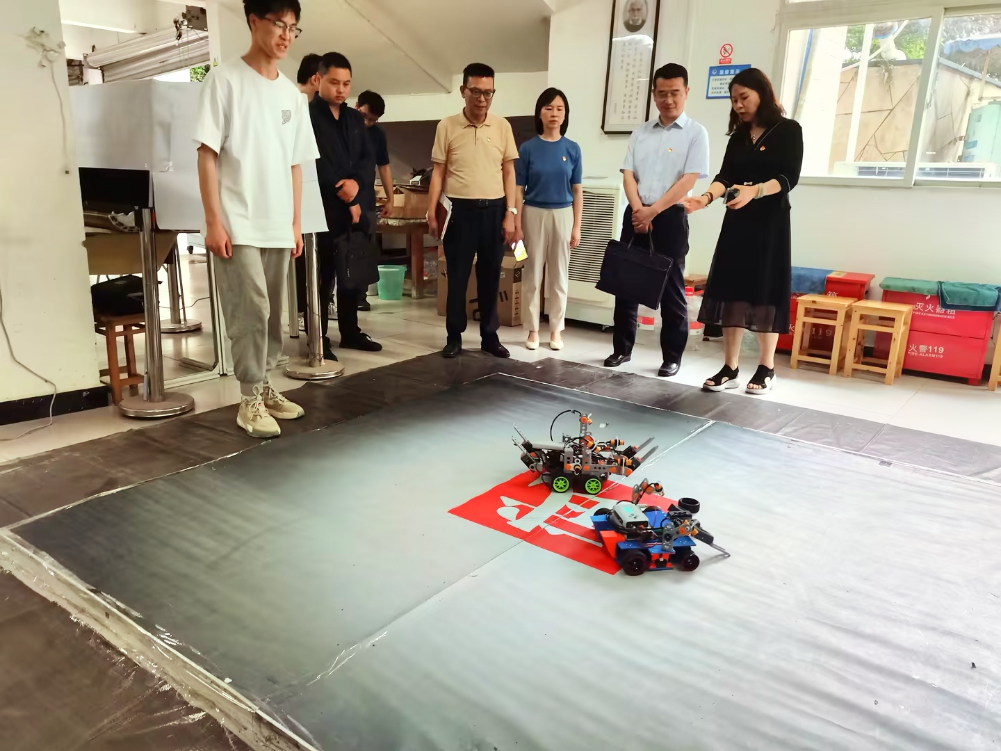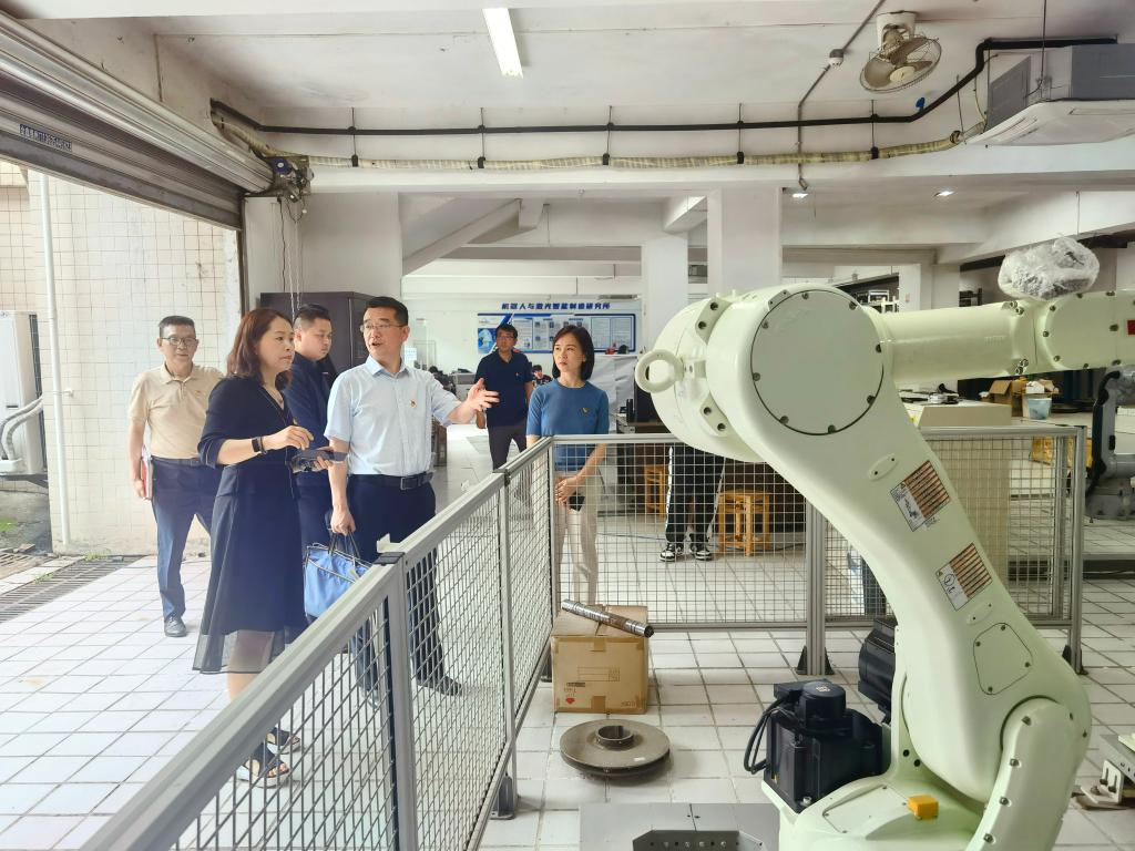 会后,市委巡回指导十八组副组长赵骏一行调研了机械工程学院实验室建设。赵骏在机器人与激光智能制造研究所就师生参与产学研、科技创新、学科竞赛等情况进行亲切交谈,并鼓励同学们勇于实践,勇于创新,勇担使命,做新时代的奋斗者。