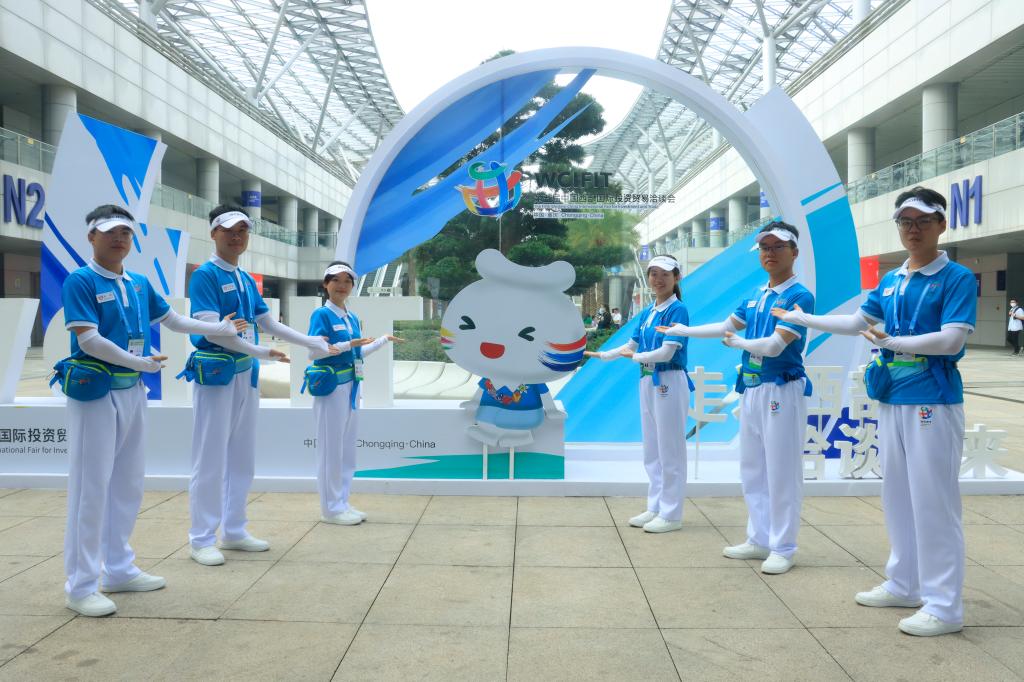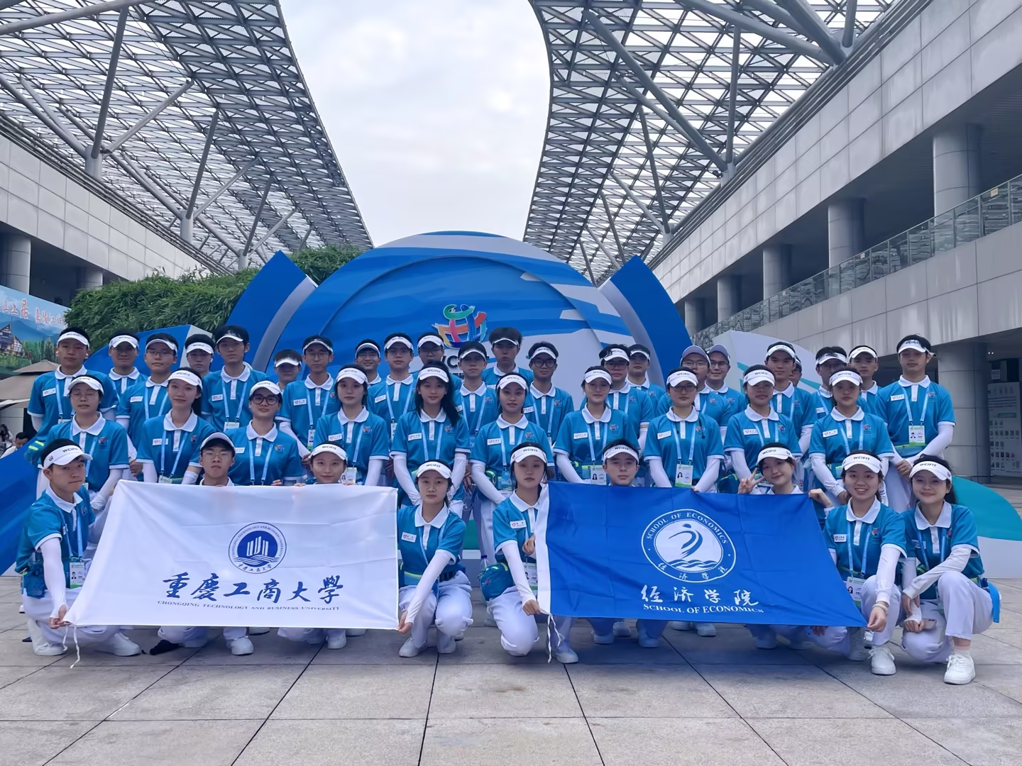 5月21日,由商务部、水利部、国务院国资委、中国侨联、中国贸促会和重庆市人民政府共同主办的第五届中国西部国际投资贸易洽谈会(简称"西洽会")在重庆悦来国际会议中心落下帷幕。万象城官网经济学院选拔出的40名“蓝精灵”志愿者经过系统培训和考核,全程参与了西洽会现场志愿服务工作。